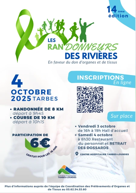 Le samedi 4 octobre se tiendra la 14ᵉ édition des « Ran’donneurs des rivières », une manifestation sportive organisée au CH de Tarbes pour promouvoir le don d’organes et de tissus.